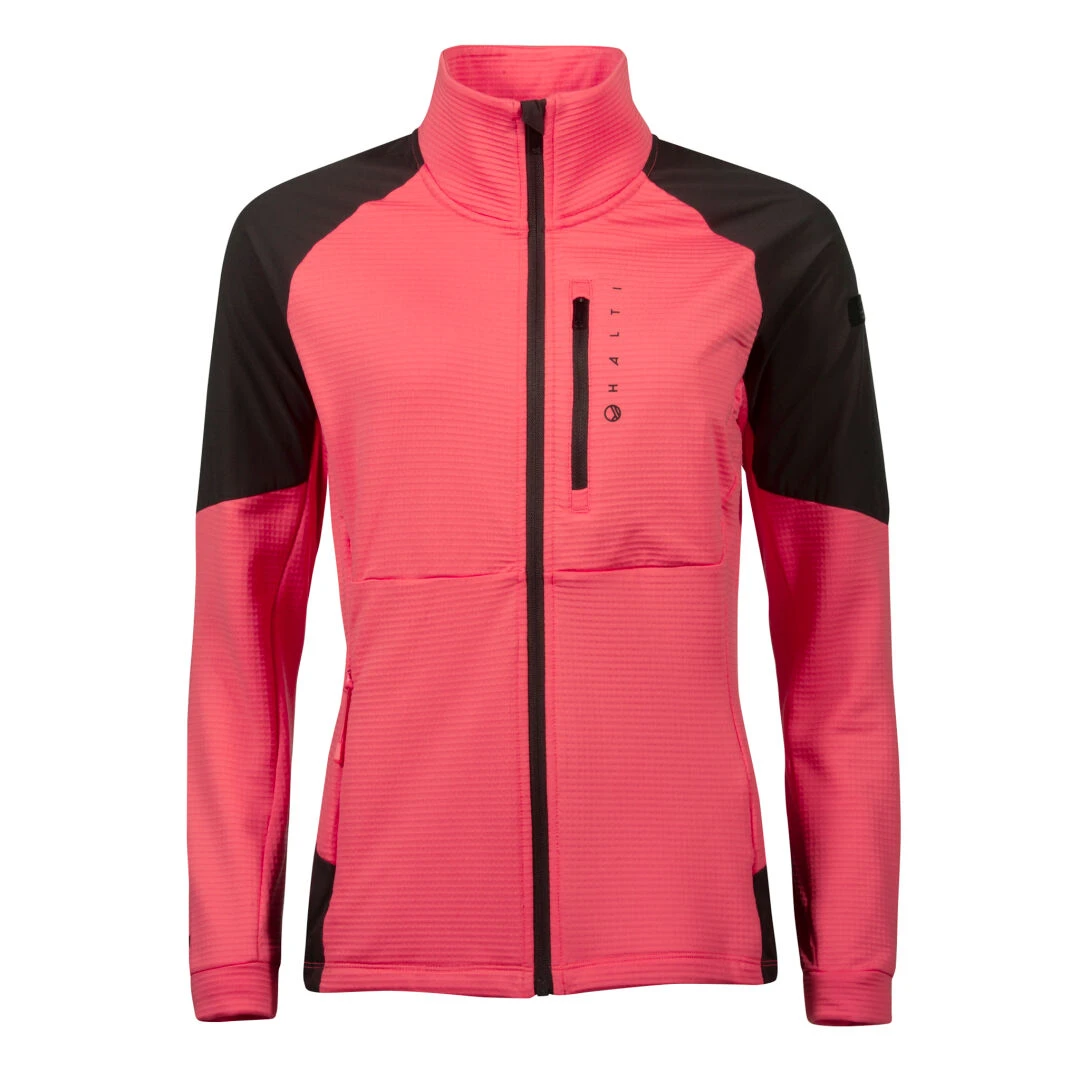 Välitakissa on tekninen Active Dry -materiaali, joka siirtää tehokkaasti kosteutta ja hengittää erinomaisesti. Takin materiaali on pehmeä vohvelikangas, joka tuntuu ihoa vasten miellyttävältä ja kuivalta intensiivisessä menossa. Hartioiden